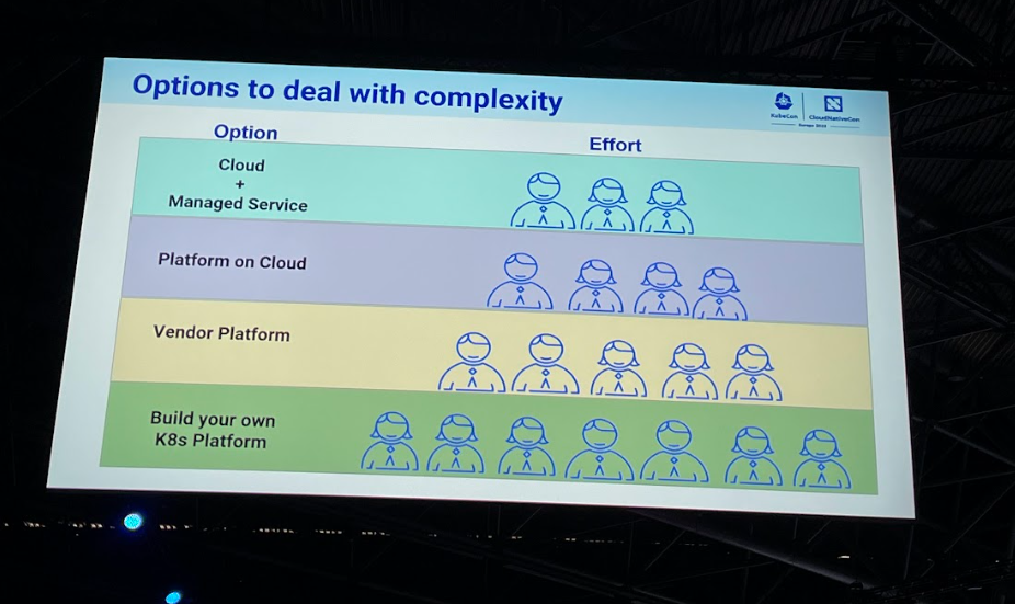 Kubernetes fournit des blocs prêts à l’usage pour construire sa plateforme. On peut grâce à Kubernetes et son écosystème avoir une plateforme à l’échelle de la semaine, là où il fallait auparavant des mois pour le même résultat. Cela permet d’améliorer: