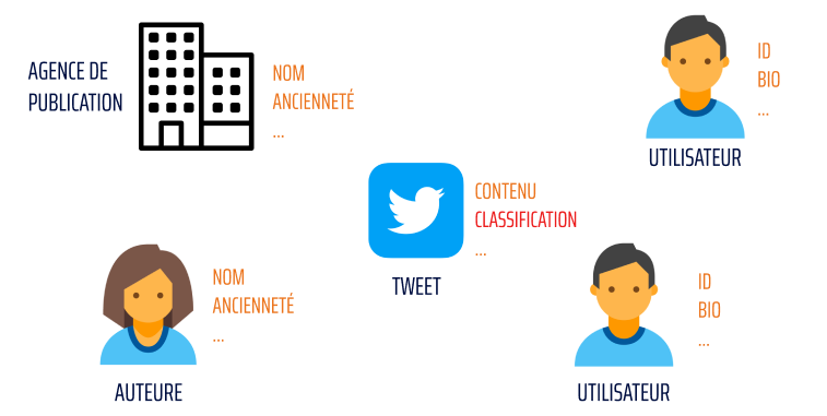 Prenons un exemple de graphe de données concernant le contexte social d’un tweet :