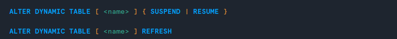 Il est possible de lancer le rafraîchissement d’une table de manière manuelle, voire de le suspendre ou de le reprendre pour une table et pour toutes celles qui en découlent au sein d’un pipeline, avec les commandes ci-dessous.