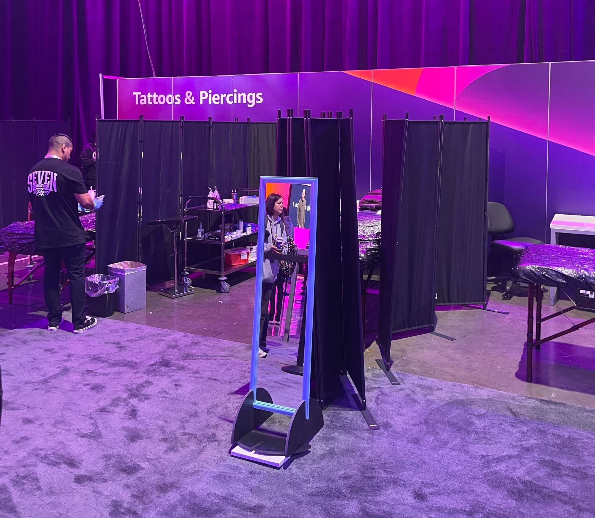 Et voilà, l’heure du grand jour a sonné. J’ai rendez-vous 30 minutes avant mon talk sur le dev lounge. En attendant, pour éviter d’y penser. Il est l’heure du tatouage ! En effet, à re:Invent, on a la possibilité de se faire tatouer (gratuitement en plus).