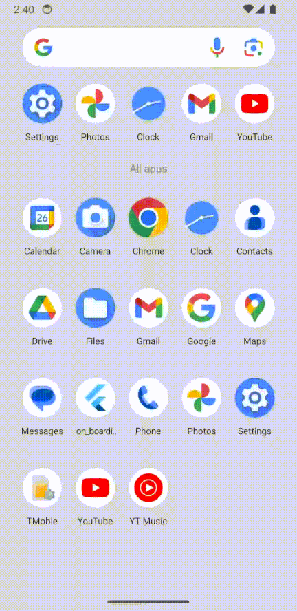 Le package flutter_native_splash nous permet de personnaliser l'écran d'accueil blanc par défaut de Flutter avec une couleur d'arrière-plan et une image d'accueil. Il nous permet aussi de retenir cet écran le temps qu’on souhaite, dans notre cas, le temps que l’AppLogic fasse son boostrap. Cela donne une dernière modification pour notre `main` .