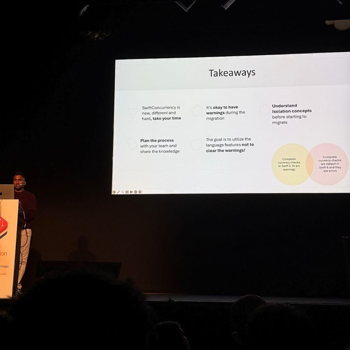 Muralidharan nous a proposé un talk très dense au niveau contenu qu’il a fallu digérer. Il a fait un article détaillé sur ce qu’il a présenté sur son site: https://swiftpublished.com/article/strict-concurrency-in-swift-6-part-2