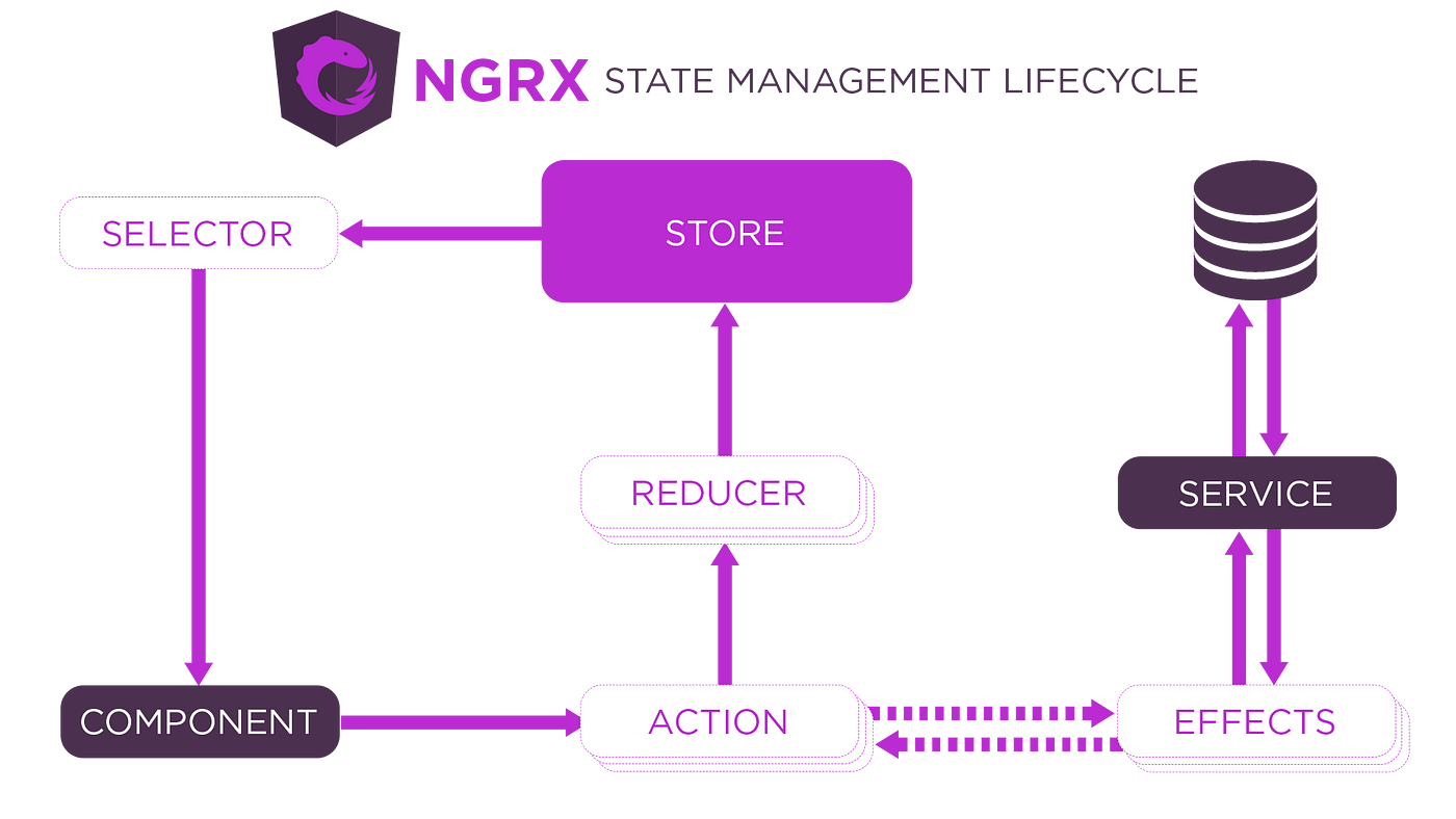 - Effects : qui permettent d'appeler des services externes en fonction de la réception d’une Action et de retourner de nouvelles actions.