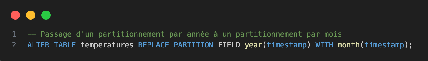 La Partition Evolution permet de changer de stratégie de partitionnement sans avoir à tout réécrire. Par exemple, il est possible de passer d'un partitionnement par années à un partitionnement par mois. Les nouvelles données suivront le nouveau schéma tandis que les anciennes garderont leur organisation d'origine.