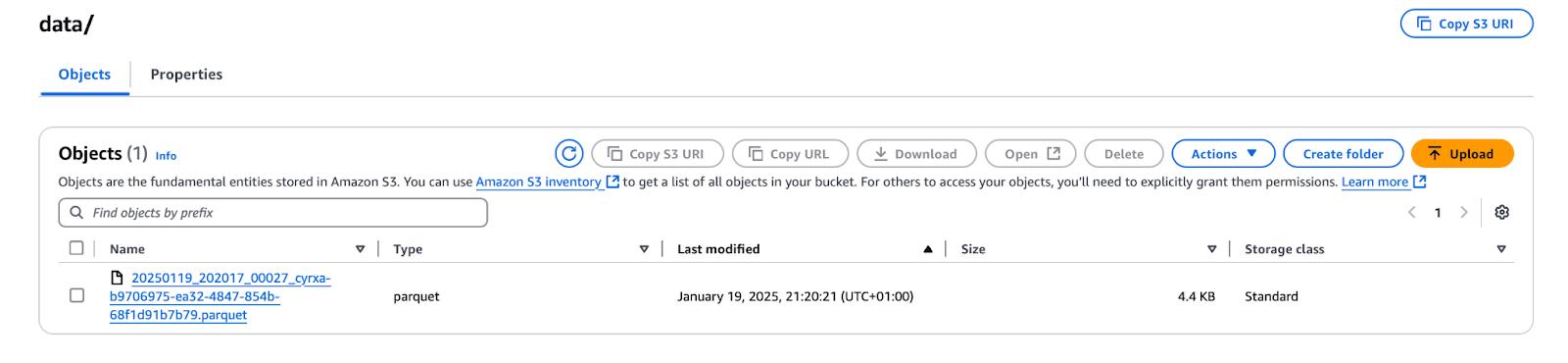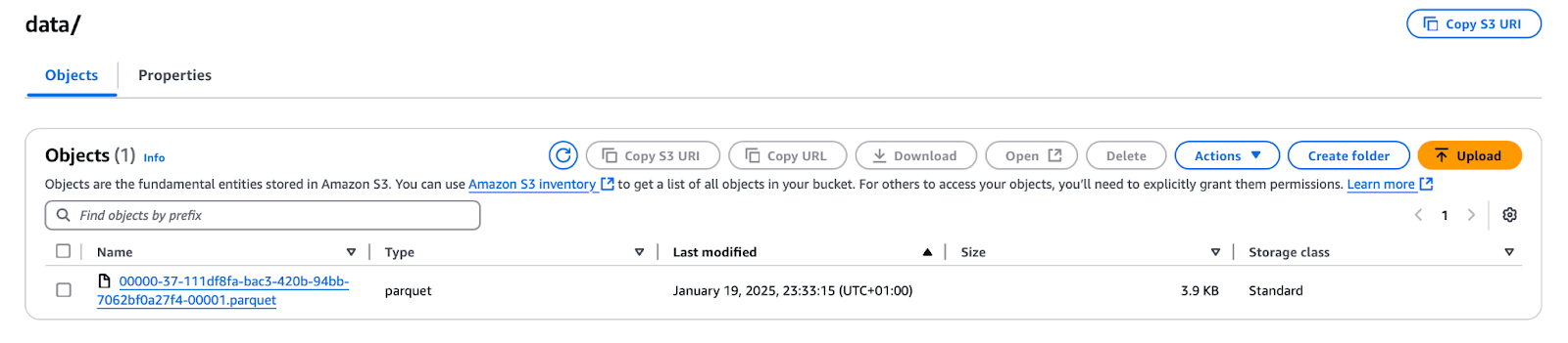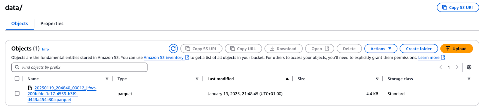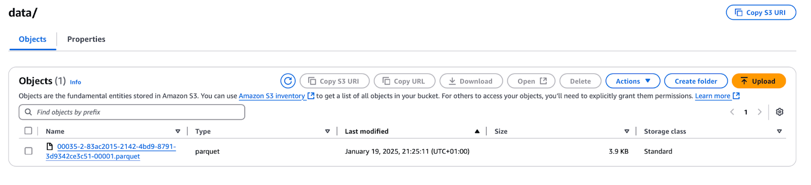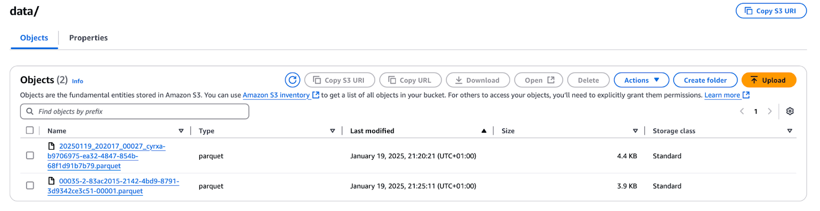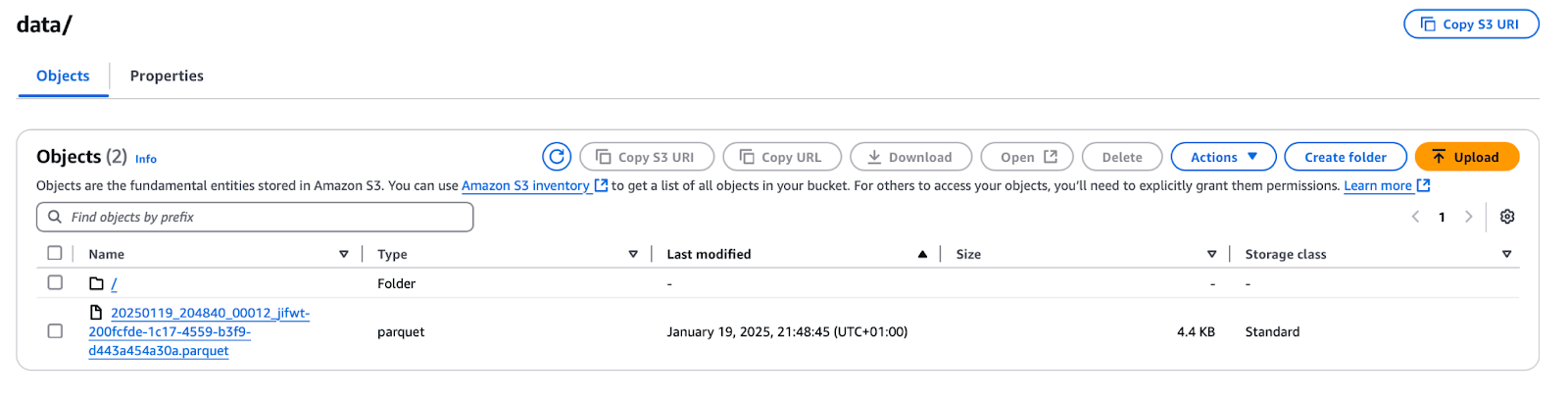 ('activity-023', 'user-001', 'movie-012', 5100, 'smart_tv', '192.168.1.1', TIMESTAMP '2024-02-09 20:00:00', TIMESTAMP '2024-02-09 21:25:00', 0.95);Cette opération crée un nouveau dossier dans les dossiers de nos tables nommé data. Ce dossier contient tous les fichiers de données de notre table au format parquet :