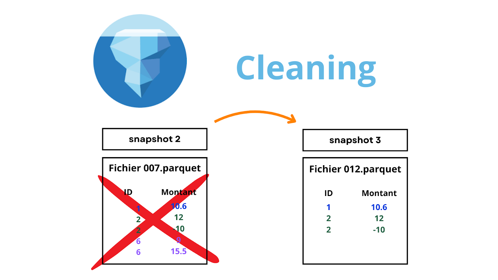 3. Enfin, l’étape du Cleaning supprime tout fichier lié à d’anciens snapshots de votre table.