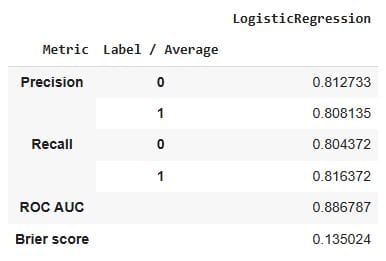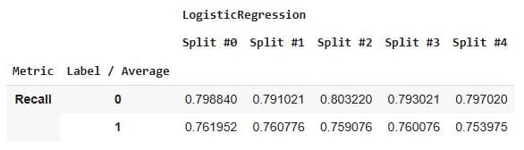 >>> {0: 0.8043722874135991, 1: 0.8163720337633381}