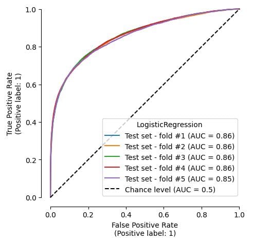 Image 6 : Courbe ROC pour chaque split de la cross validation