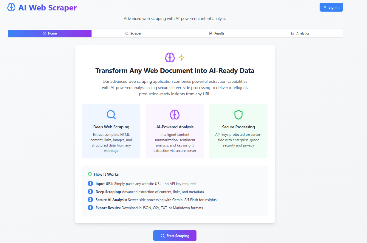 En guise de proof of concept, j'ai ensuite appliqué la même méthode pour la création d'une application web de scraping de documentation API - avec le résultat suivant :